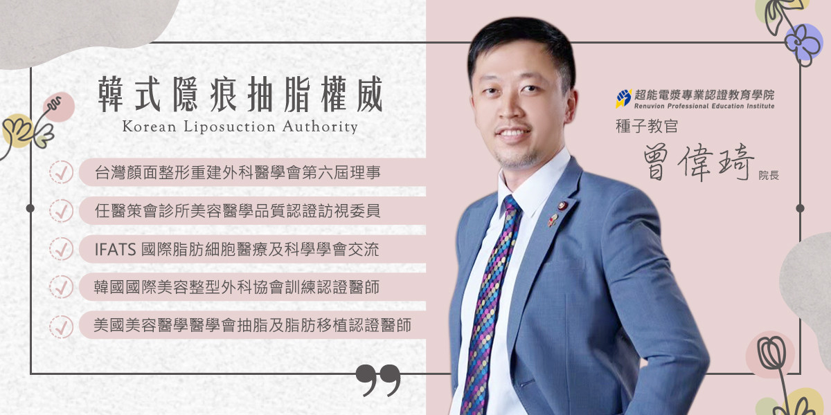 曾偉琦院長不僅是國際級頂尖體雕醫師,同時也是國內外各大醫學會指定的熱門講師,多年前曾遠赴韓國進修深造,將新一代經肚臍隱痕抽脂(韓式隱痕抽脂)引入台灣,至今已成為抽脂體雕及自體脂肪移植界的權威級導師,並擔任台灣顏面整形重建外科醫學會第六屆理事、醫策會診所美容醫學品質認證訪視委員。