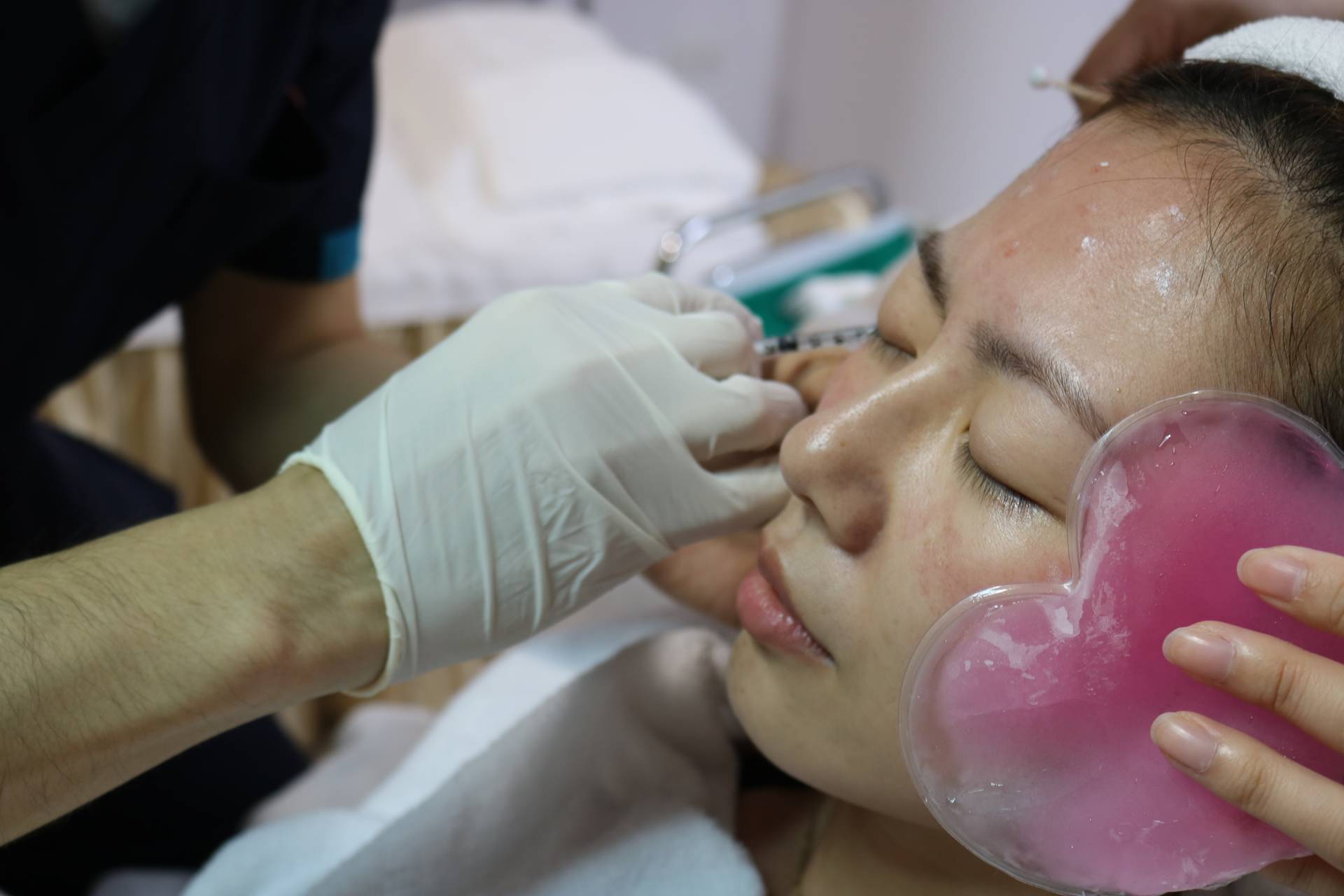 臉部消毒後才會施打喔~