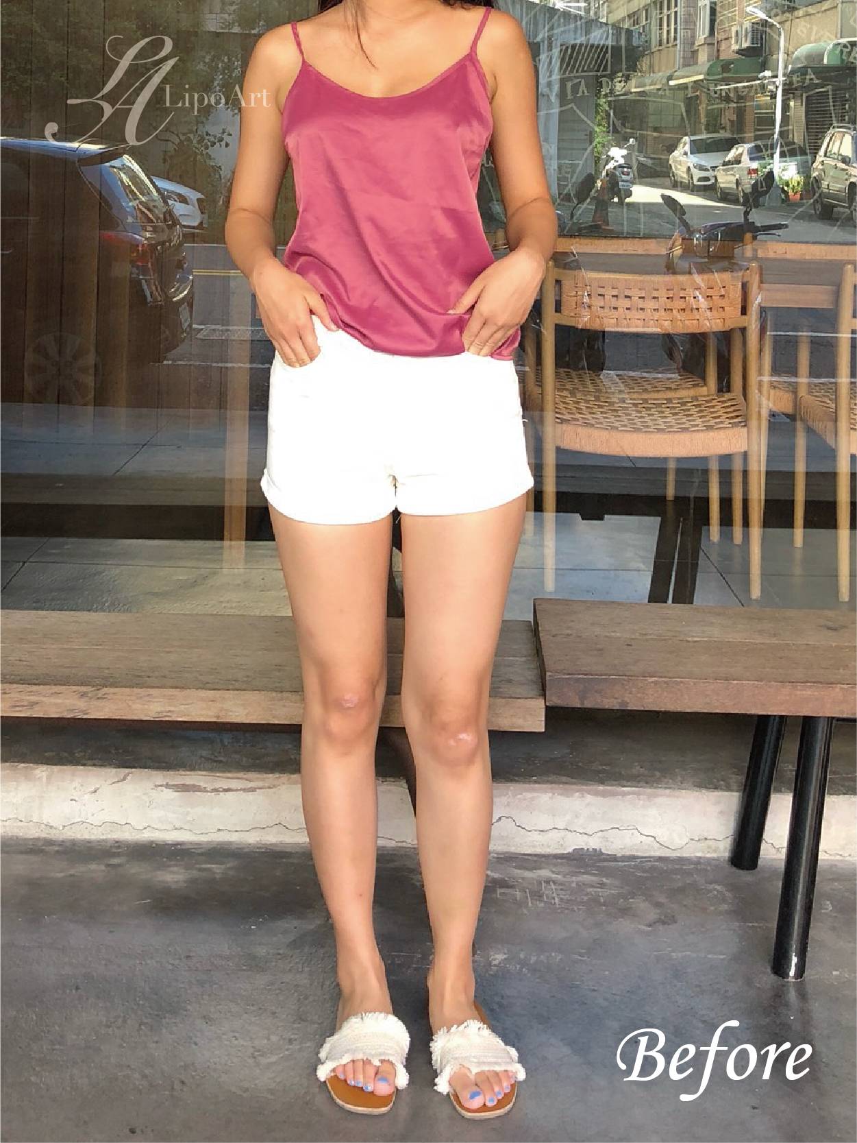 ▲ 術前整體紀錄(左):術前因多餘脂肪肥厚、堆積,造成腿型比例不佳的困擾。