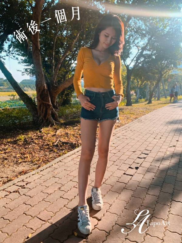 ▲ 術後整體紀錄(右):術後可以看出大腿與小腿線條連續性更為筆直,整體視覺也顯修長