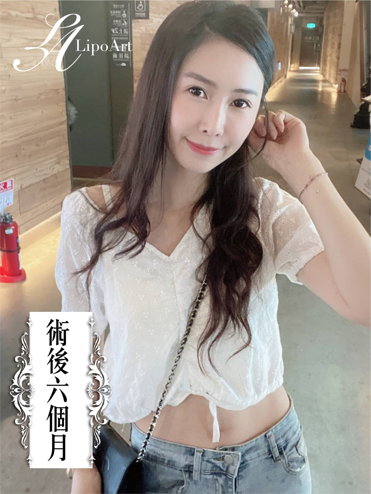 ▲ 術後正面紀錄(右):術後可明顯看出腹部變得緊實平坦,腰際及腹部線條更為纖細。