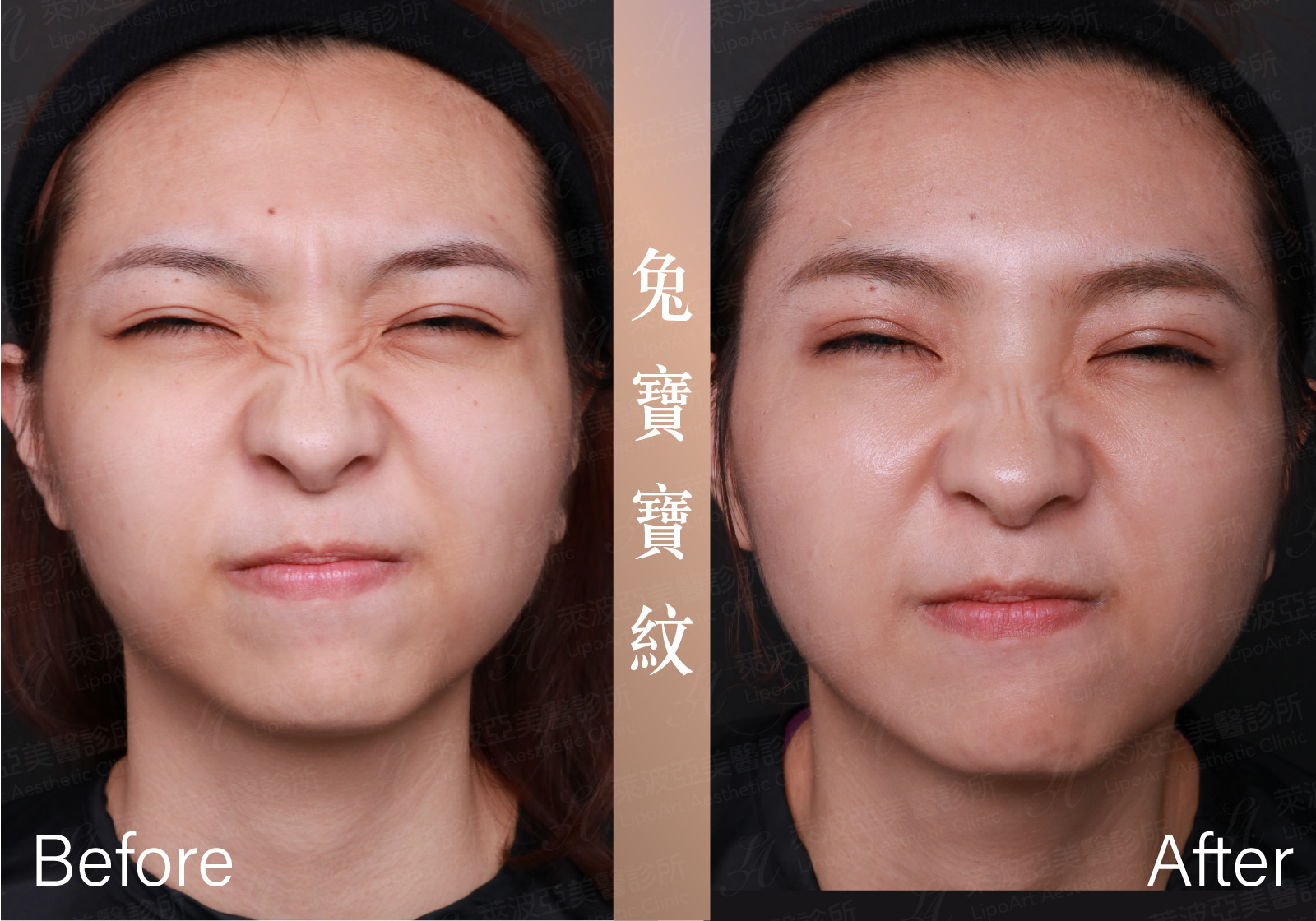 案例分享【Joanna】抬頭紋+皺眉紋+魚尾紋+兔寶寶紋-跟惱人紋路說掰掰,Get青春少女顏 同樣身為護理師的 Joanna 本身就是個愛笑、愛拍照的女孩,因為臉部表情多,經常喜歡抬頭、皺眉、皺鼻子等,長時間讓臉上出現了明顯的細紋。 在經過多方諮詢了解,由於同樣身為護理人員,所以 Joanna 本身對於施打劑量、部位、施打方式以及診所案例特別講究,最終她選擇了萊波亞美醫診所。 治療日當天,專員會講解注意事項及術後照顧,接著幫 Joanna 洗卸、敷麻。 Joanna 說整個施打過程相當舒適,萊波亞的醫師不僅會耐心的說明,再進行施打,過程中專員及醫師也會不斷安撫她的小緊張😊 重要的是術後非常好照顧,像是多注意防曬、不要太激烈運動、高溫日曬就好,其他幾乎完全沒有影響到她的日常作息💕 本文Joanna同意本院使用其相關照片:萊波亞美醫診所照片使用第108019字號 本院所刊檔案照片皆必須經過當事人同意,非當事人同意之檔案照片皆有完善保護程序。術後【抬頭紋+皺眉紋+魚尾紋+兔寶寶紋】今年過年 Joanna 回家,家人都發現她細紋不見了!而且還誇她笑起來更美了! 她回診也笑著跟我們分享,自己覺得術後效果相當自然,不會有笑起來很僵的、很假的狀況!讓她格外感到滿意!💖 本文Joanna同意本院使用其相關照片:萊波亞美醫診所照片使用第108019字號 本院所刊檔案照片皆必須經過當事人同意,非當事人同意之檔案照片皆有完善保護程序。