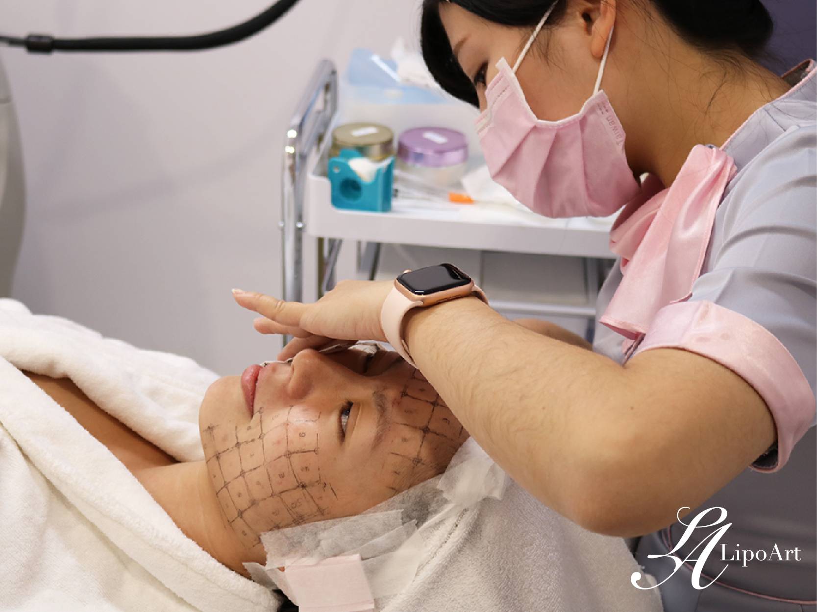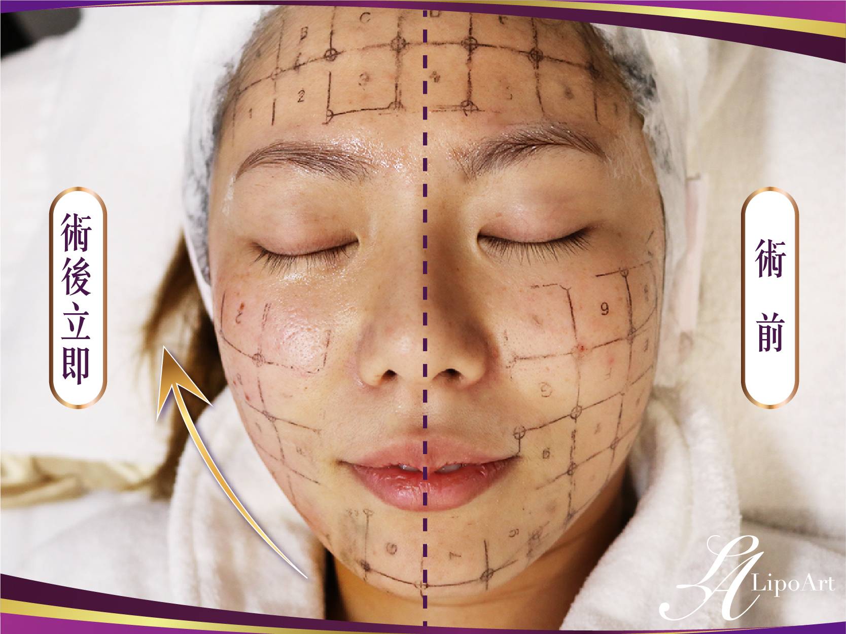 施打完畢後皮膚表面幾乎沒有泛紅,