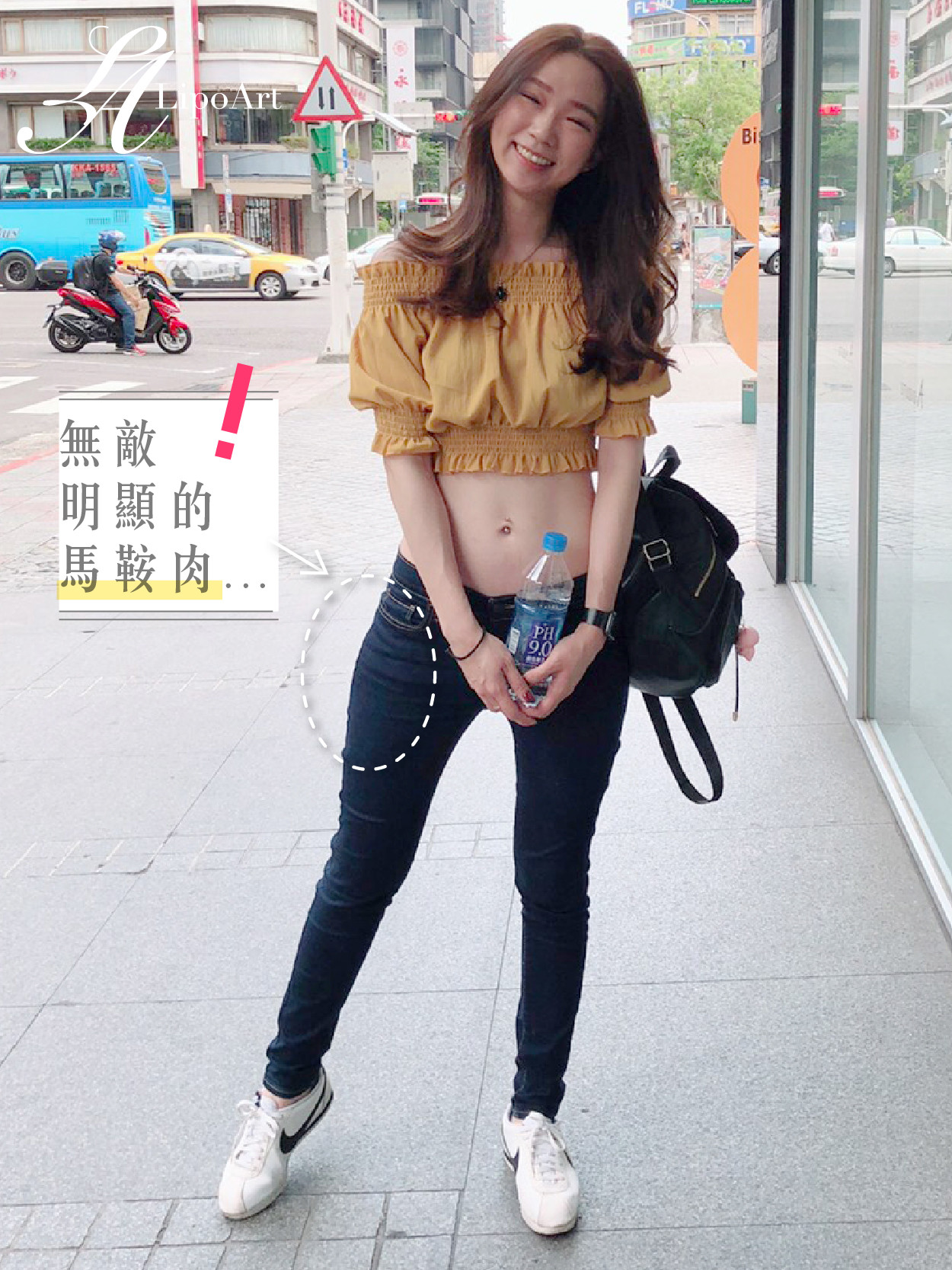 ▲術前背面紀錄(左):術前馬鞍、大腿內側