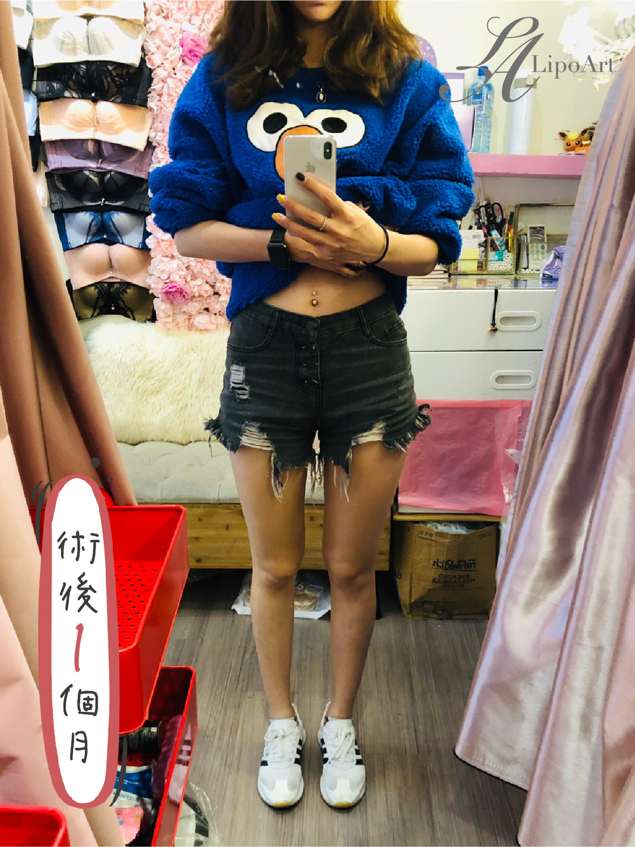 ▲ 術後正面紀錄(右):術後將囤積脂肪移除,