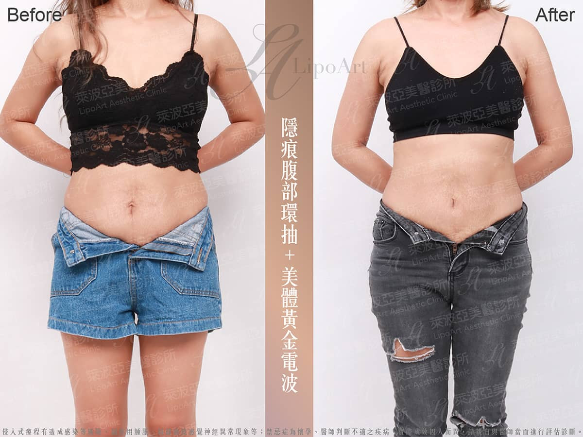 術後【新一代隱痕-腹部環抽+Thermage FLX 第四代電波拉提-大玉璽】