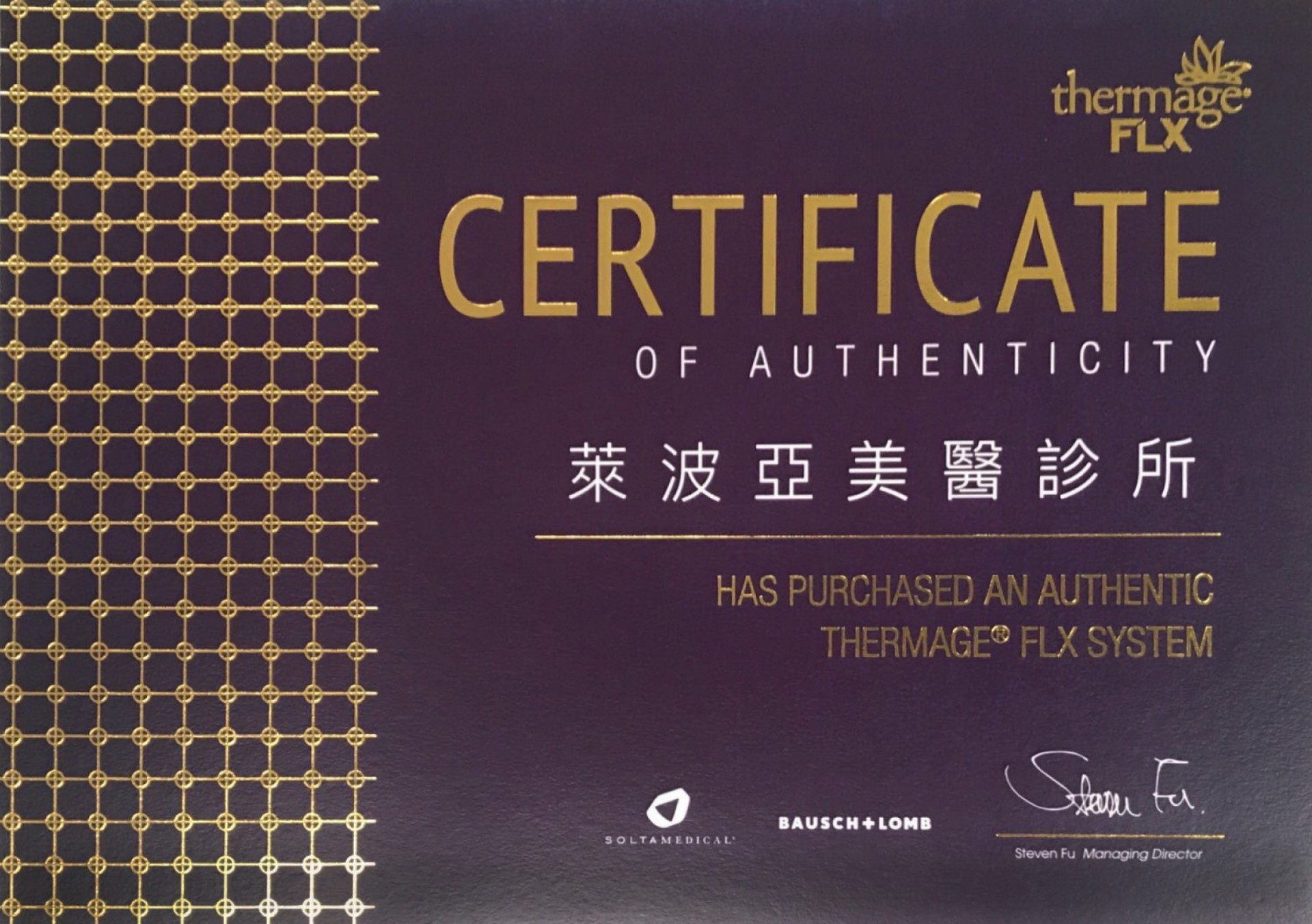 原廠醫師訓練證書:紫鑽/碧眼探頭認證。