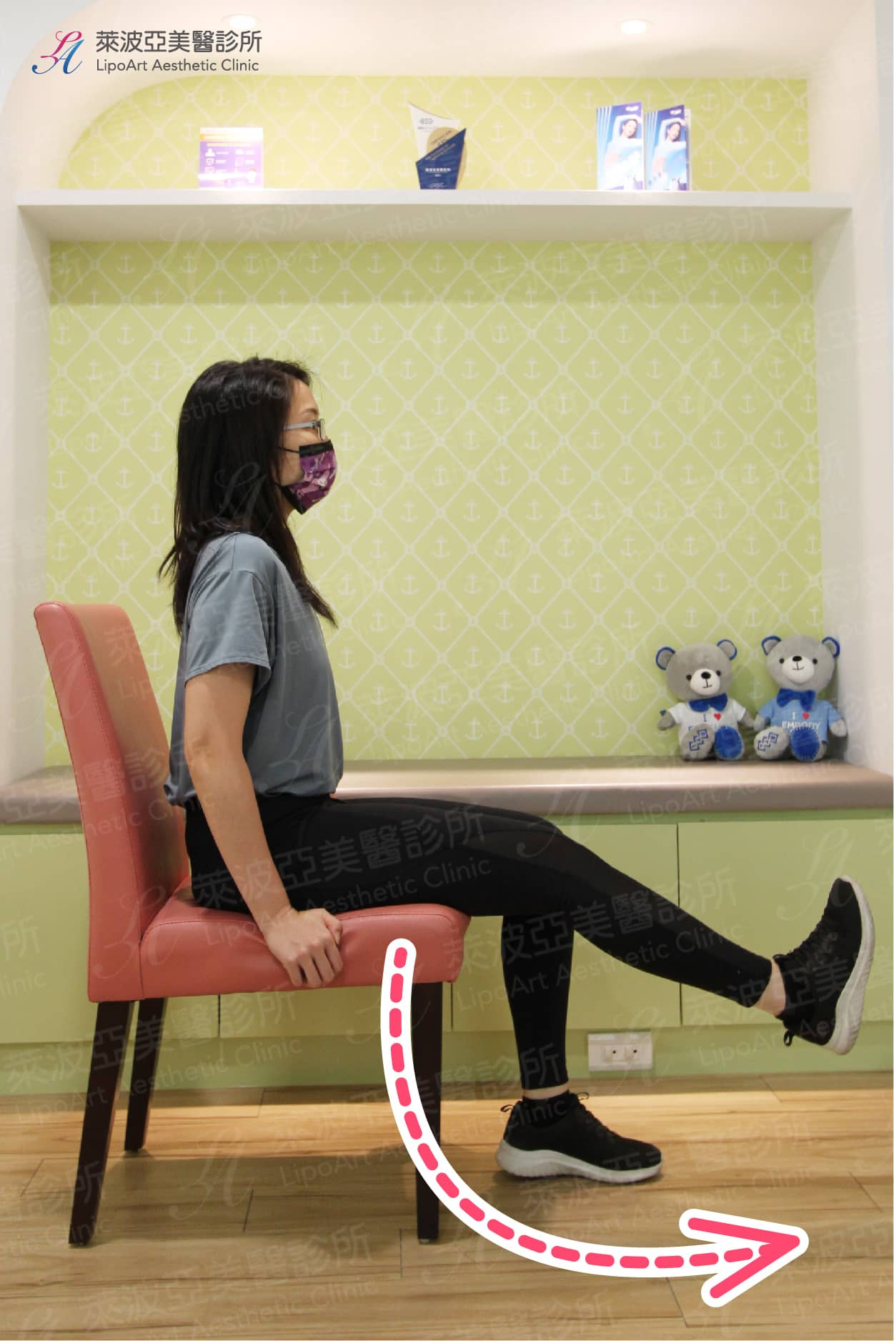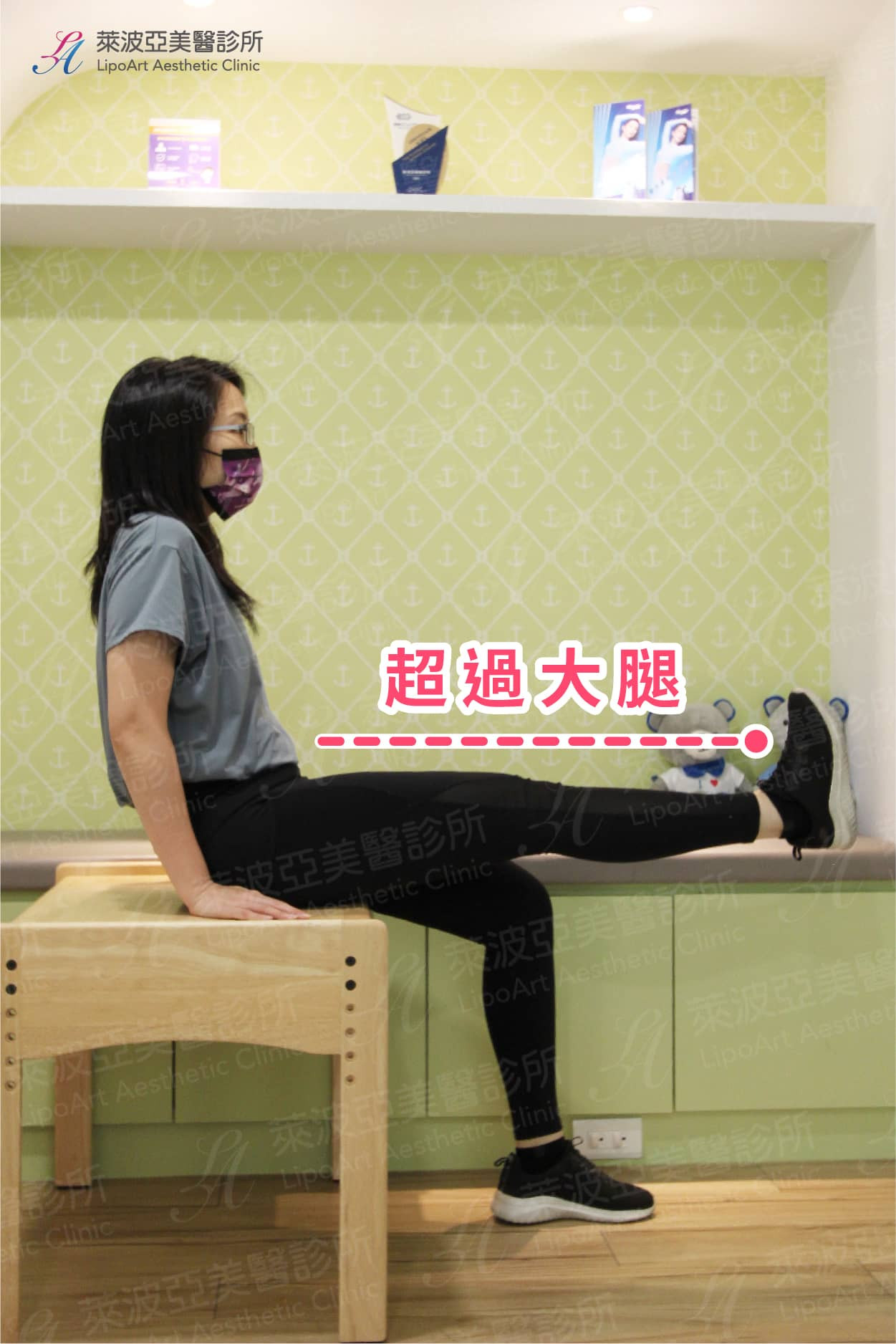 (2) 訓練包含大腿前側的股四頭肌和後側膕繩肌,強壯的肌肉可以增加膝關節的穩定度,並且在身體支撐體重的時候,減輕軟骨的負重。