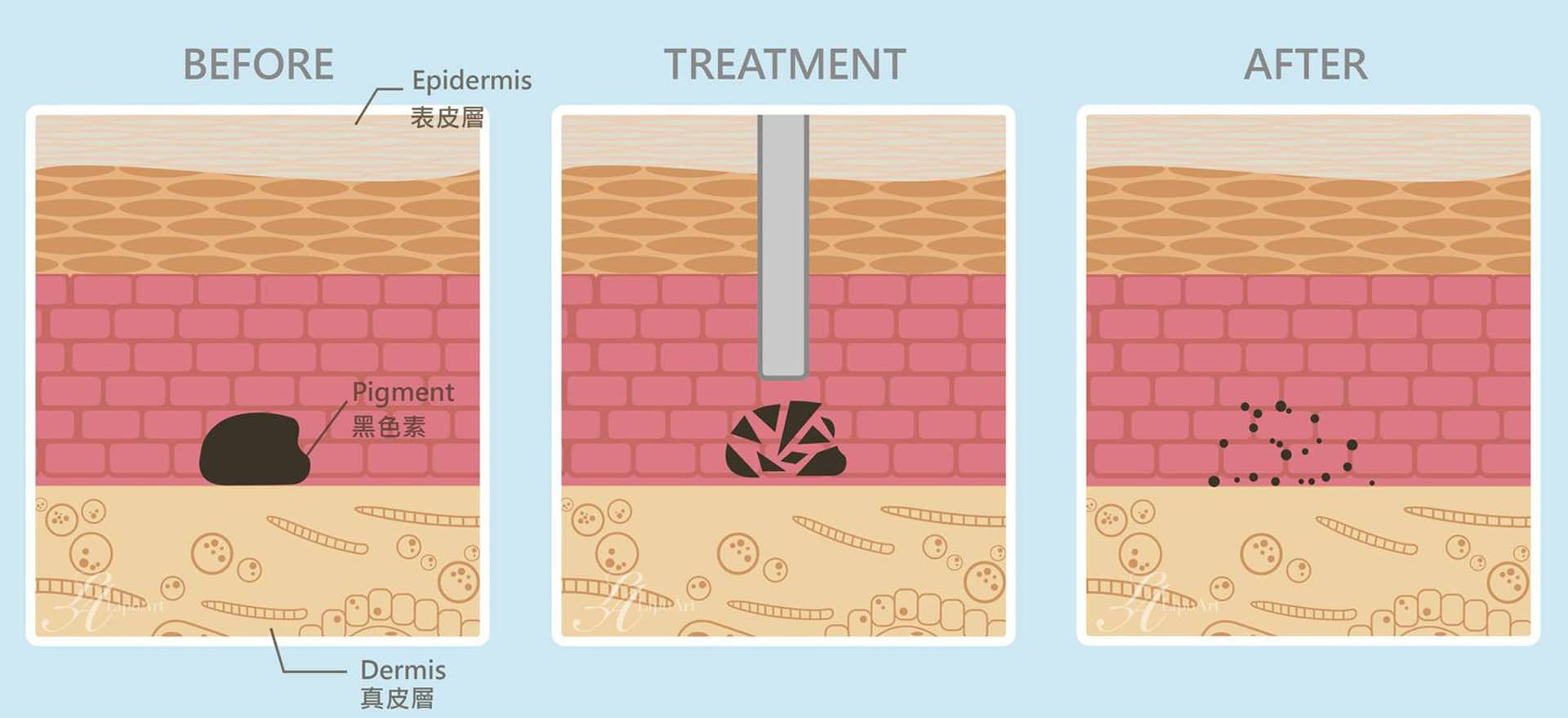 - 堅持原廠正貨儀器-通過 TFDA/FDA/CE 認證的美國 Pico Q 皮秒雷射。