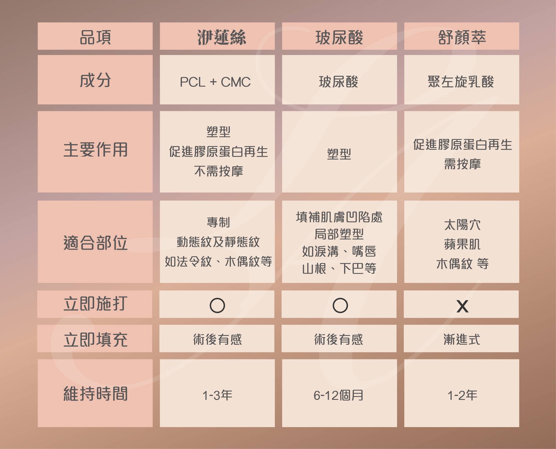微整型針劑比較表